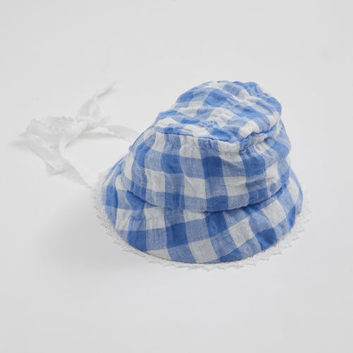 Louisdog-Palm Springs Revesible Bucket Hat/Blue Gingham