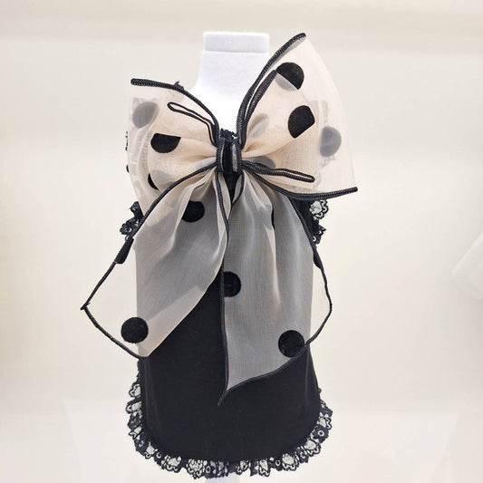 Trilly black dot bow blouse